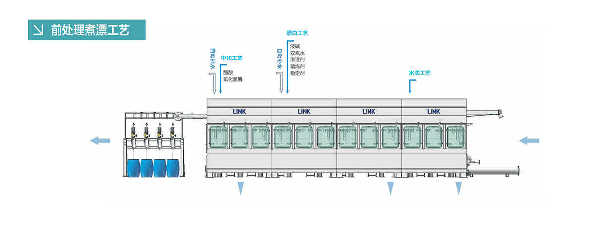 前處理水洗:煮漂、增白、酶洗、絲光水洗、退漿、減量水洗