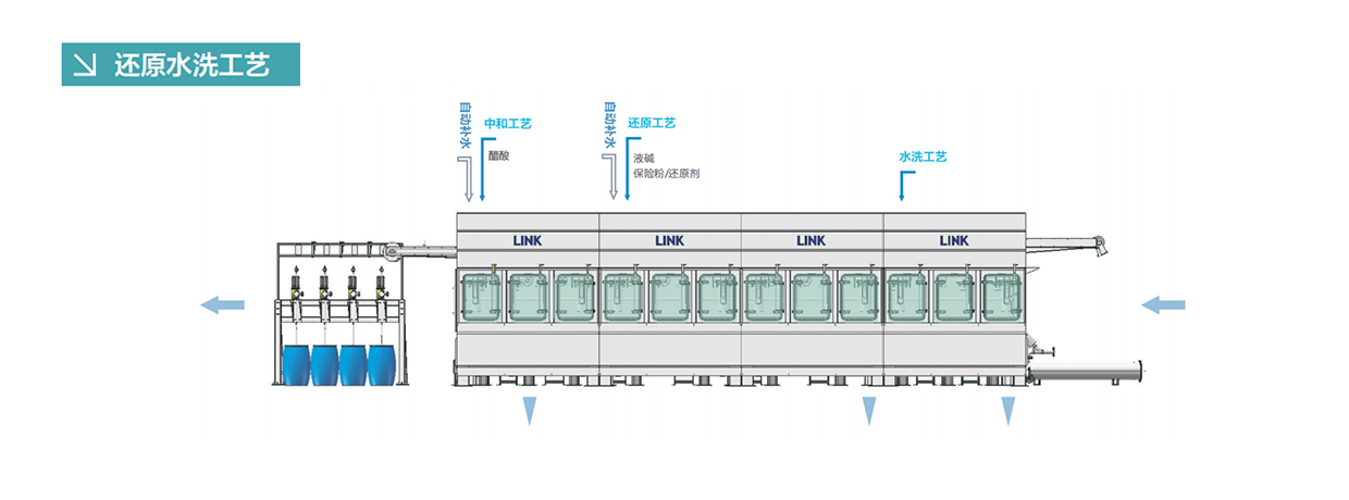 染色后水洗:活性皂洗、酸性固色水洗、分散還原水洗、色織水洗