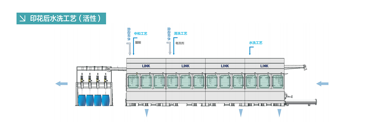 高效水洗模式:平幅水洗搭配繩狀水洗往復(fù)式水洗,超聲波水洗。