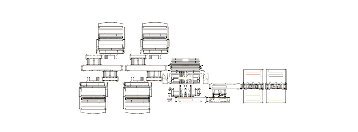此機(jī)型結(jié)構(gòu)適用于布匹打卷后的連續(xù)無人化包裝使用,打卷后的布不分先后可以無秩序進(jìn)入主機(jī)包裝,經(jīng)過感應(yīng)器檢測布匹信號,通過PLC控制布匹走向,包裝好的布通過爬高機(jī)裝置進(jìn)入高位輸送帶,再經(jīng)過高位輸送帶直接落到和定型機(jī)相對應(yīng)的指定布車,真正實現(xiàn)無人化包裝,無人化輸送,達(dá)到自動化控制包裝流水線的目的,為紡織企業(yè)節(jié)省人力,提高生產(chǎn)效率