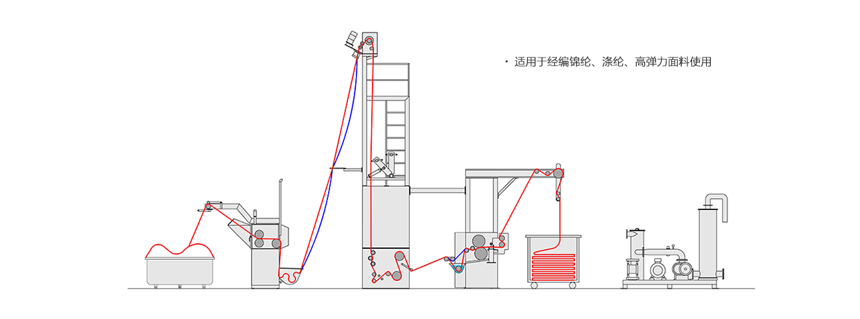 適用于錦綸泳布、滌綸、彈力面料,梭織滌棉、四面彈、羅馬面料的染色后開幅壓水吸水使用